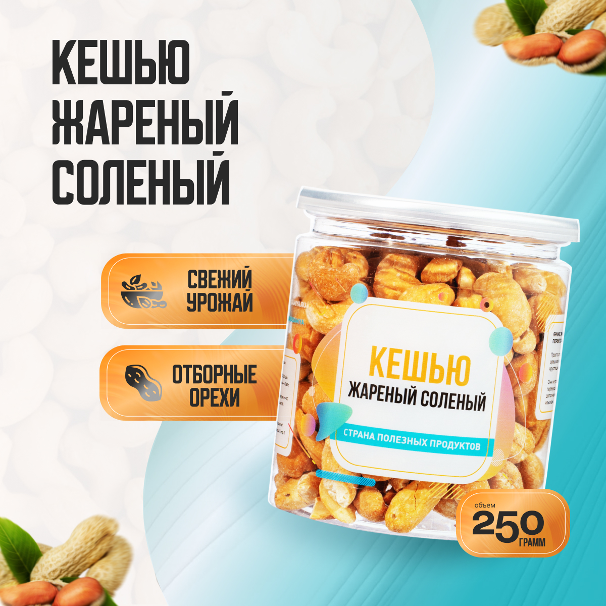 Жареные соленые кешью имеют армию своих поклонников по всему миру. Их хрустящий насыщенный вкус приносит истинное наслаждение. Это готовое блюдо для перекуса быстро утоляет чувство голода и при этом переваривается быстрее, чем сырые орехи. Жареные соленые кешью помимо отменных вкусовых качеств являются полезным продуктом. Они богаты, как и сырые орехи, полезными жирными кислотами, белками, важными витаминами и минералами, служат здоровой добавкой к вашему рациону при умеренном потреблении.